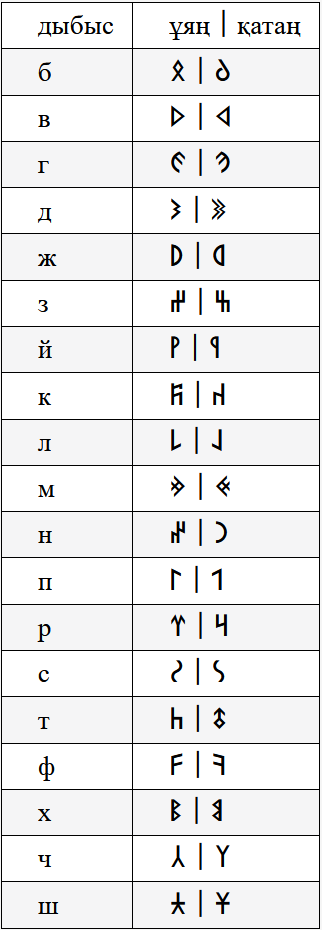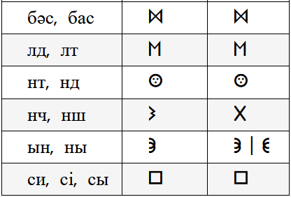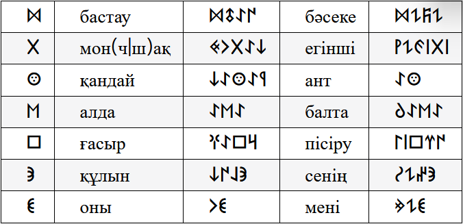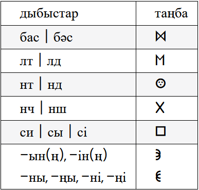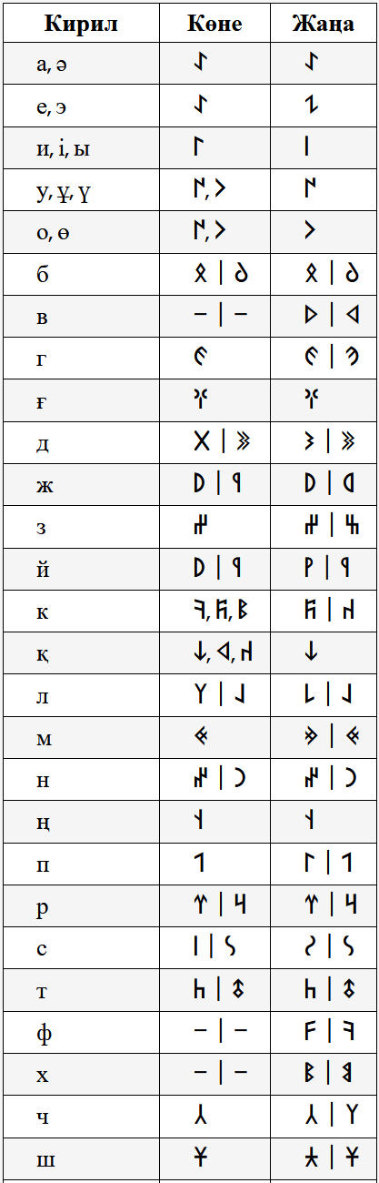 Таңбалардың оқылу ережелері көне жазудағыдай: