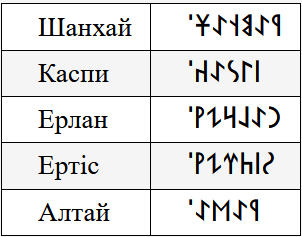- Көне Жазу – "Түрік Бітік" бағдарламасы мен bitig.kz сайтындағы ежелгі нұсқа. Оны сол дереккөздердегі Turik.ttf фонтымен жазуға болады.
